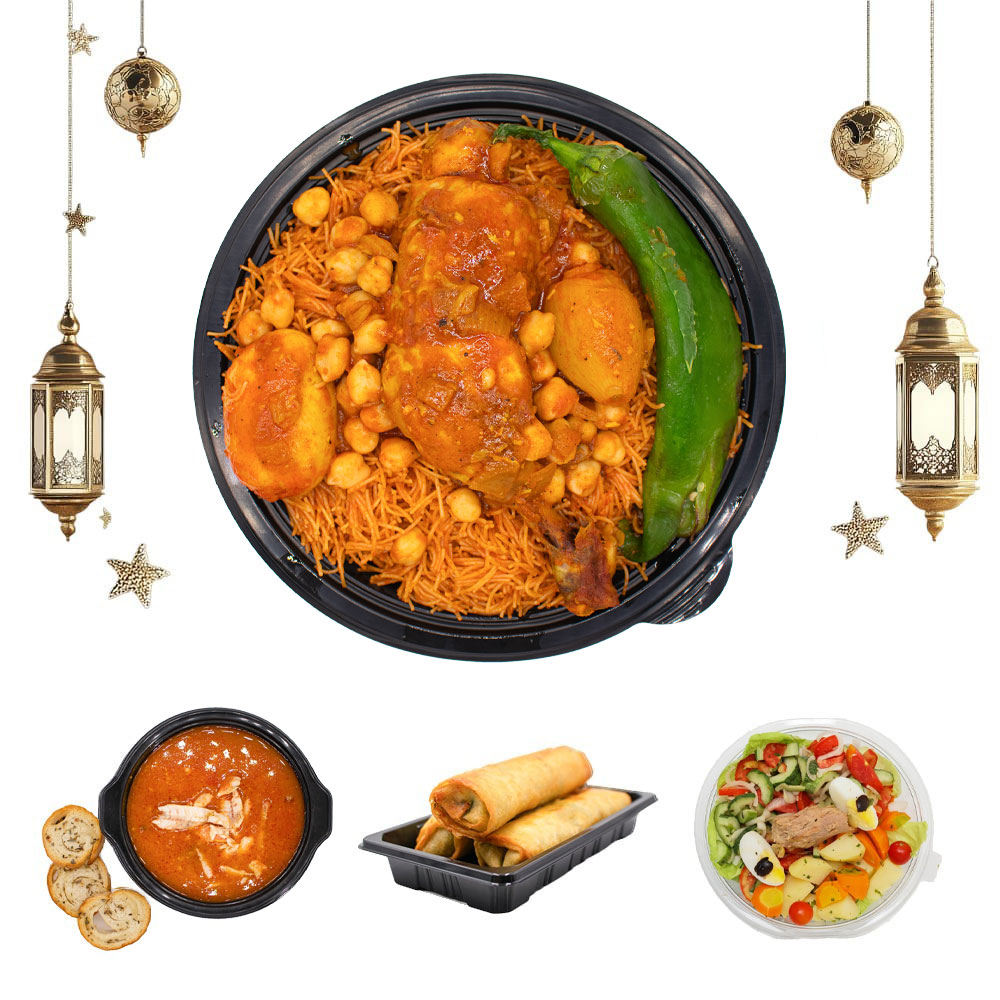 Découvrez nos Packs Ramadan : Basique, Économique ou Prestige.Chaque pack comprend : Soupe + Salade + Brick.